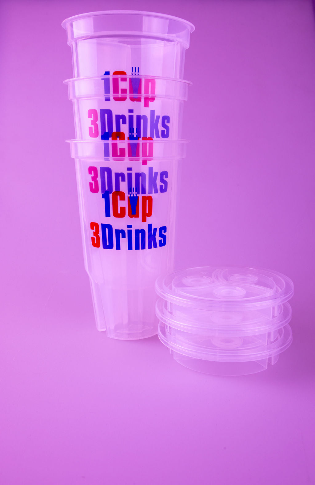 Our stackable 3-compartment 24oz party cups are game-changers for those tired of the same old drink.