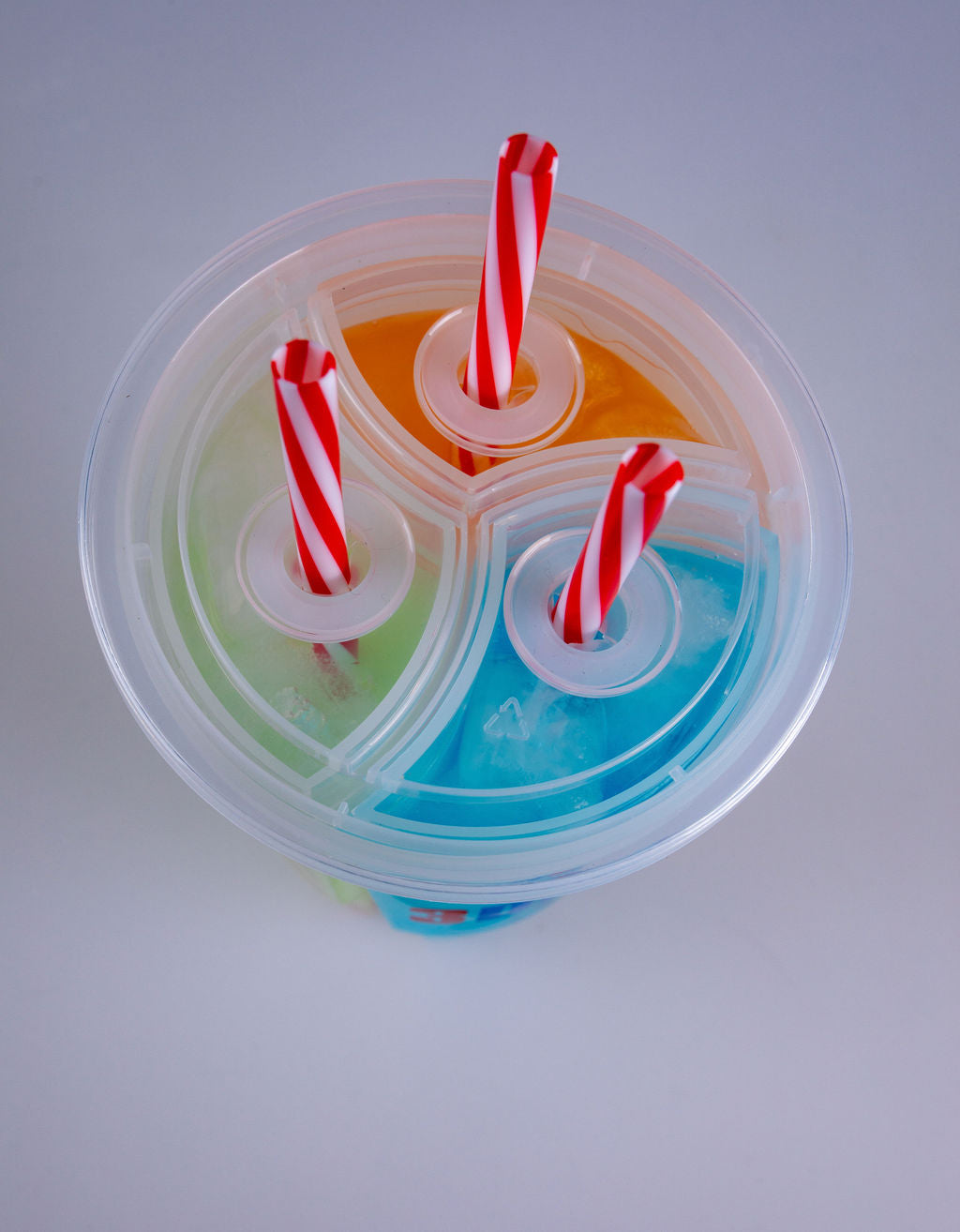 The WesCup features three eight-ounce sections in its three-compartment cup and comes with a custom-designed lid with three straw holes.