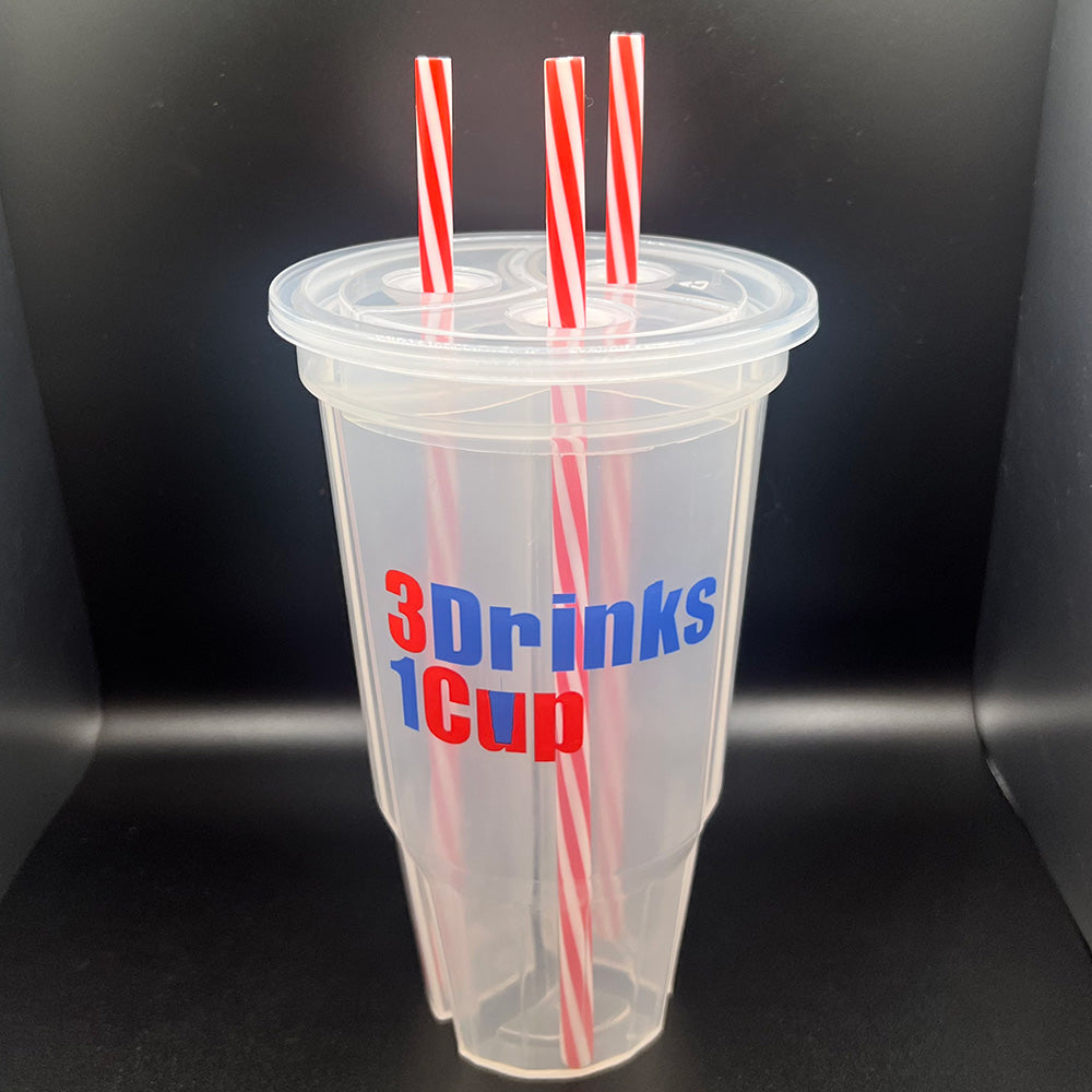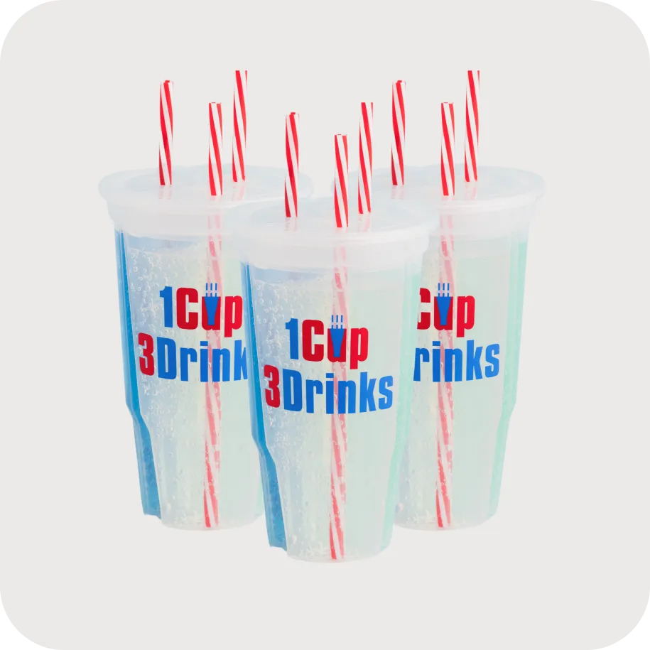 Our stackable 3-compartment 24oz party cups are game-changers for those tired of the same old drink.